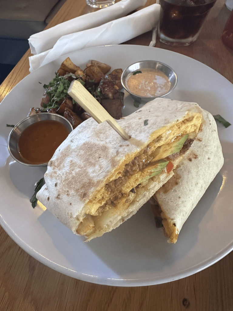 For the most part, I agree with him, but I don’t live in Hell’s Kitchen. Breakfast food is the middle-aged equivalent to picking up pickle ball instead of golf: cheap and easy. For less than 20 USD, I can brew a pot of coffee, drink a poorly fermented bottle of brut with Tropicana, toast two waffles, and churn out shakshuka for me and my wife in less than ten minutes. But, if there is one thing I will claim from Caucasian culture, it is the Sunday brunch. Sometimes, it is worth spending $100 to loiter on the rooftop of Sundown at Granada in Lower Greenville and eat their soggy biscuits and gravy. You can find this phenonemon in any major city in the states. The breakfast burritos at Bottlecap on 12 South in Nashville might be my favorite contribution from gentrification. Ascension’s chorizo Cali burrito in the Design District is a close second: